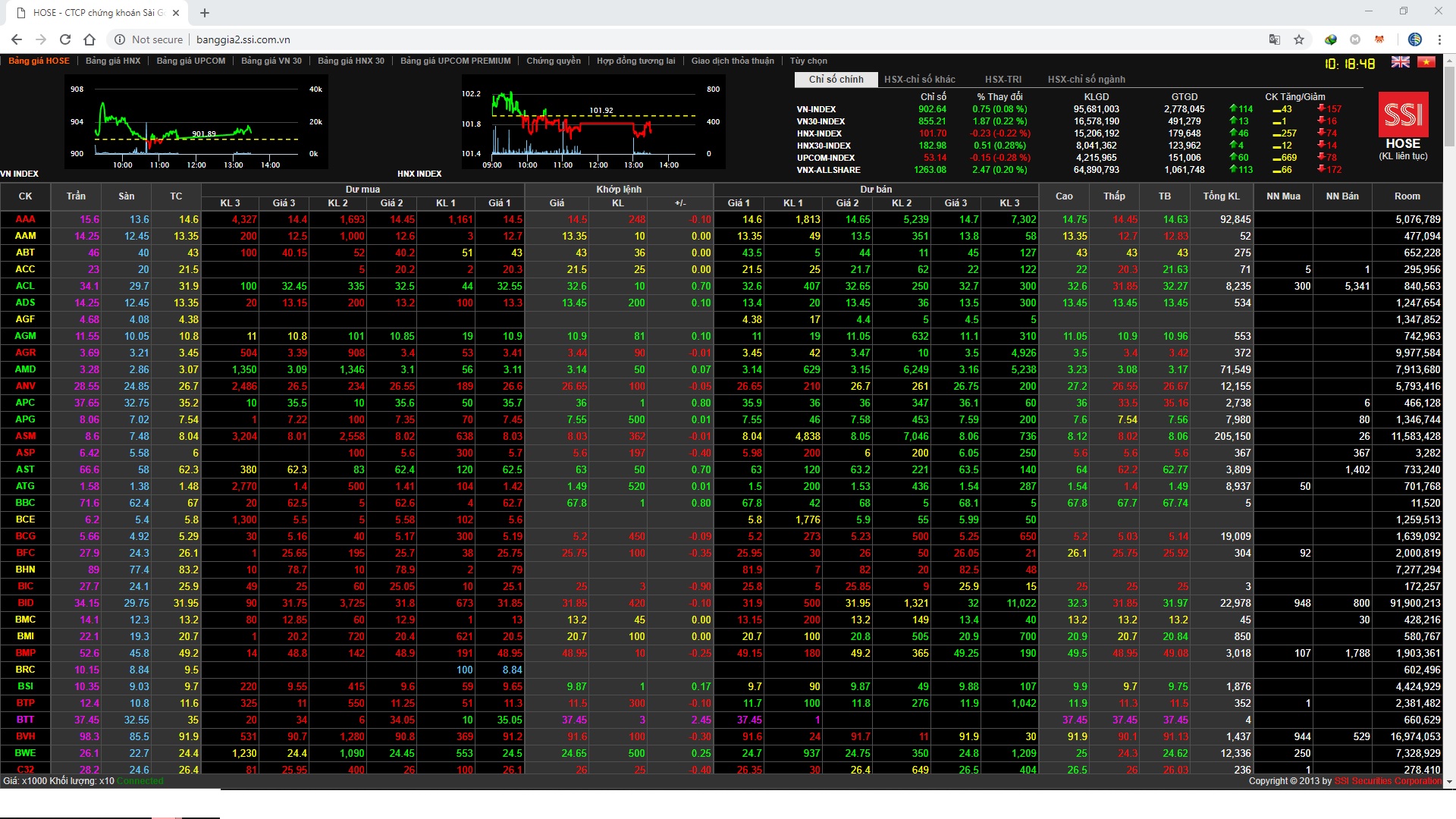 Muốn theo dõi bảng giá sàn HOSE, mời bạn kích vào Đây(Sau khi kích vào bạn vui lòng đợi một vài giây để hệ thống load dữ liệu).